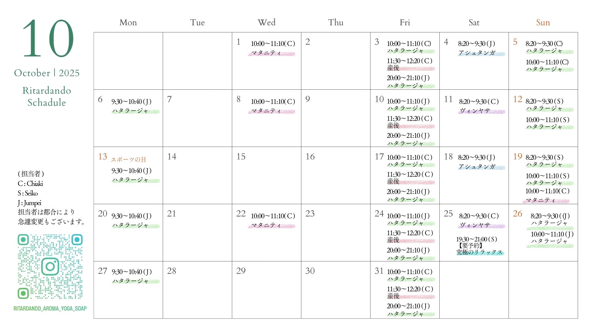 マタニティヨガ、産後ヨガは毎回予約が必要です。