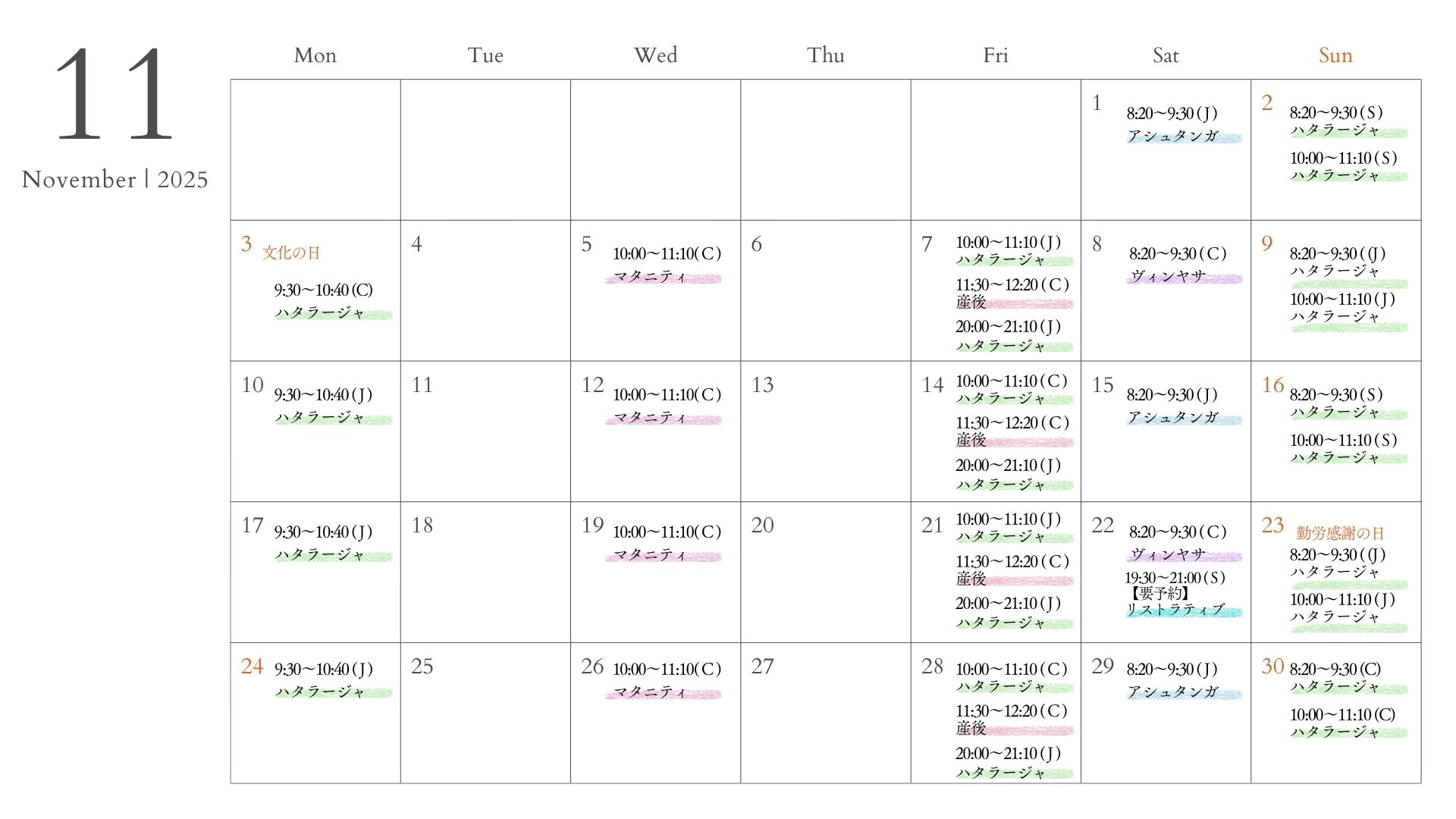 • マタニティヨガ、産後ヨガは毎回予約が必要です。